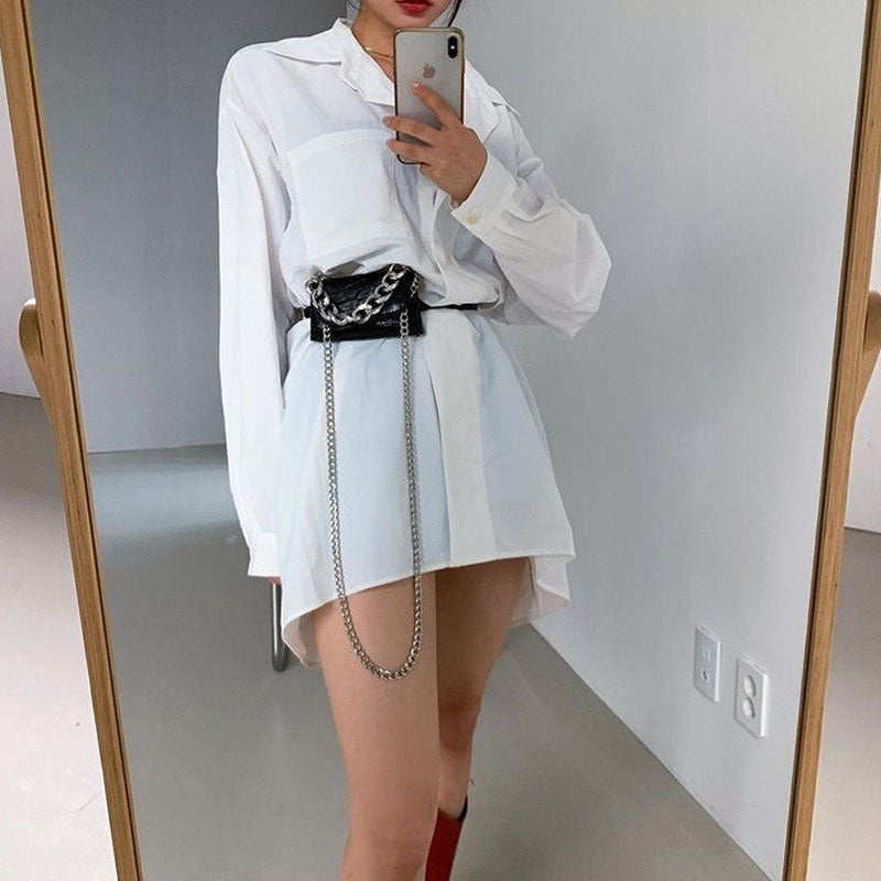 Fashion Mini Chains Waist Bags for Women Fanny Packs for Cool Girls Luxury Pu Leather Shoulder Crossbody Bag Belts Chest Purses