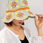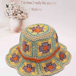 This artfully crafted bucket hat has a definite, vintage wow factor. created entirely of hand-crocheted paper. It has flower patterns all over the hat.