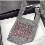 Thank You Sequins Bags Women Small Tote Bags Crystal Bling Bling Fashion Lady Bucket Handbags Vest Girls Glitter Purses Brand