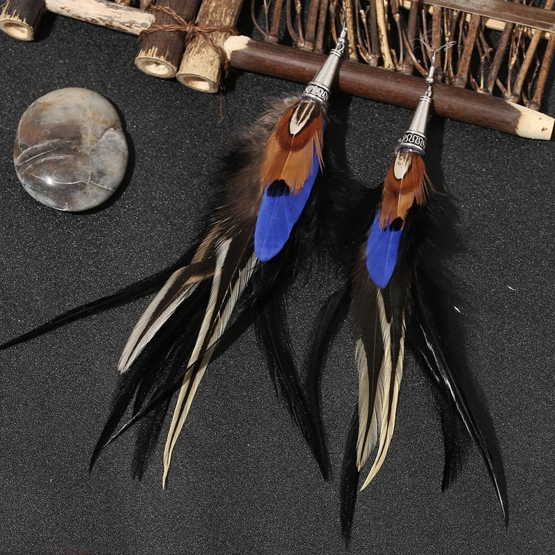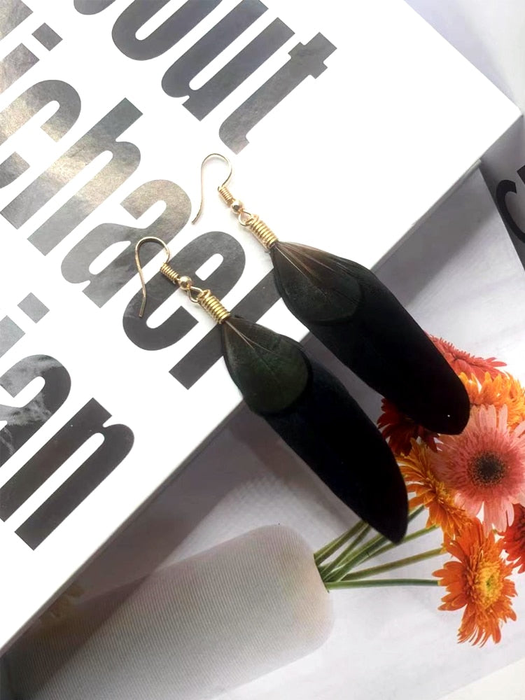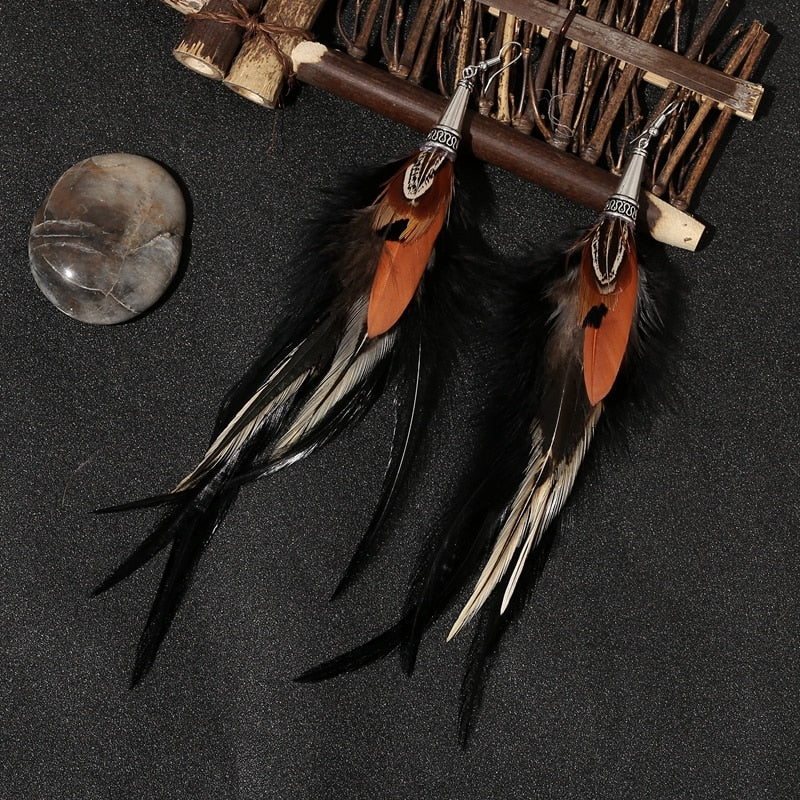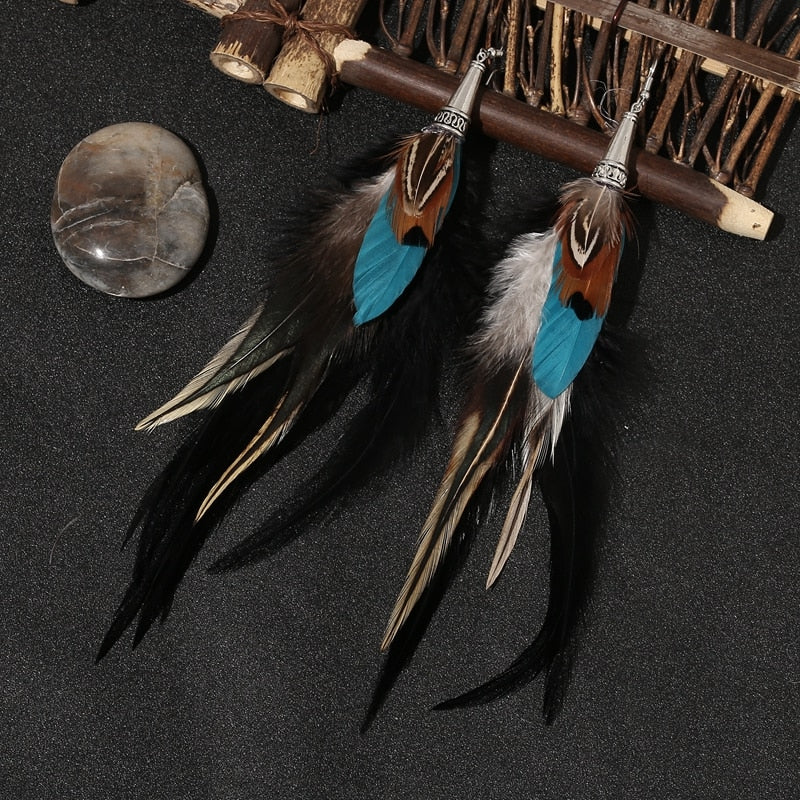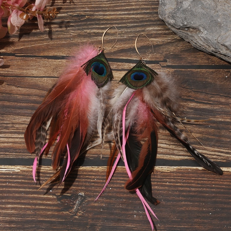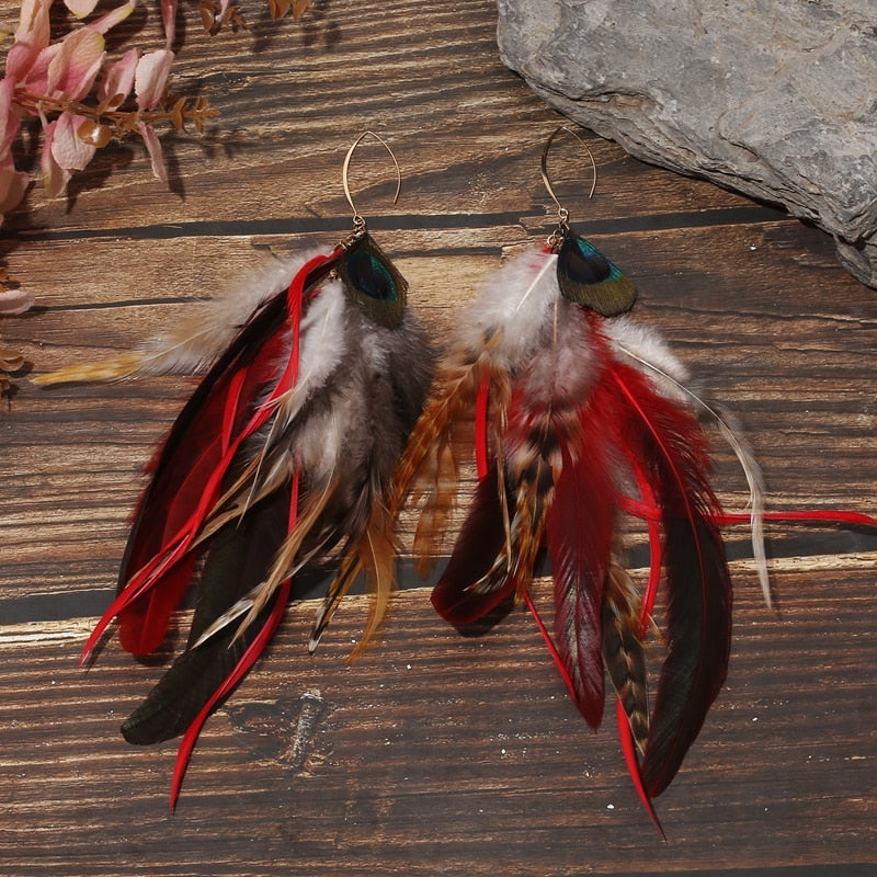 Add a touch of boho glam to your ensemble with these beautiful feather earrings. These eye-catching earrings are perfect for dressing up any outfit. With their intricate design and dainty chain tassels, they're sure to add a touch of luxury to your look. Wear them to your next special event or wear them every day for a touch of glamor.