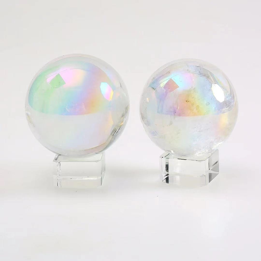 30MM-70mm Angel Aura Clear Quartz Sphere Ball Crafts Healing Crystals Stone