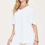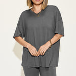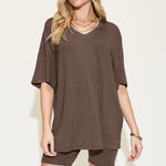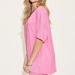 Basic Bae Full Size V-Neck Drop Shoulder T-Shirt and Shorts Set