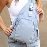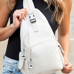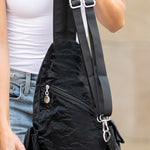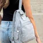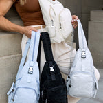 ***Backpack Converts to Sling Bag by Zipping Strap and Combining Straps on Clasp***