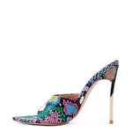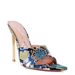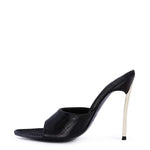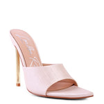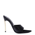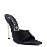Pointed toe high heeled slider sandals with classic moon cut straps. The stylish heels are in rage and worth every penny spent. Has alight inner sole cushioning which absorbs strain.