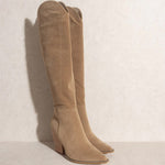 KNEE HIGH COWBOY BOOTS? YES PLEASE! THE CLARA WEARS LIKE A DREAM WITH THE PERFECT PANELS, A POINTED TOE, AND A 3.5 INCH HIGH HEEL