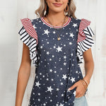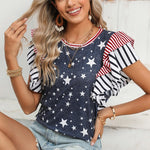 Flag Stripe Ruffle Sleeve Star Shirt USA