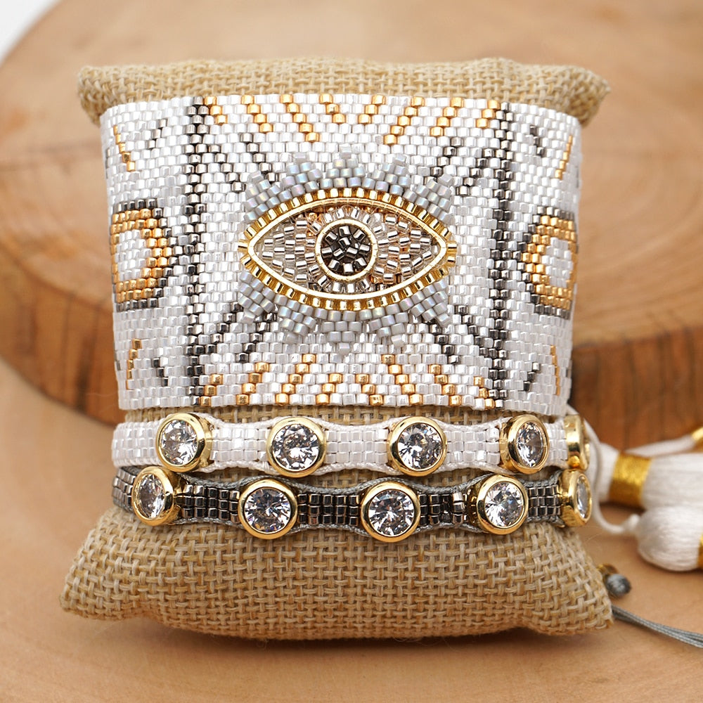 Go2boho Turkish Evil Eye Bracelet Set Miyuki Greek Eye Bracelet For Women Pulseras Femme Handmade Beads Woven Jewelry Gift