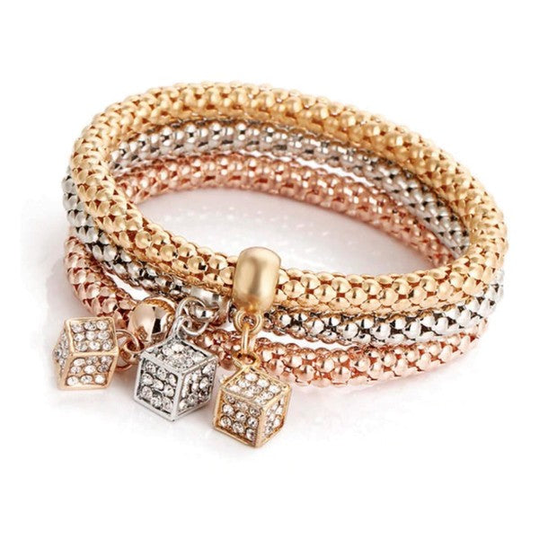 This set of 3 separate bracelets is a little bit posh and a whole lot of poise. A mix and match of metal tones to complete your look. This bracelet set is elegant on its own or stacked with other bracelets.
