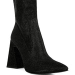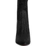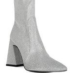 Disco ready - the boots are fancy and all things shiny with the shimmer. The construction of the block heels and pointed toe is sharp and adds an element of intrigue to the boots. The boots are ideal for a party night during cold weather so you can feel comfortable and look fashionably top-notch. It has side zipper opening which makes it easy to wear.