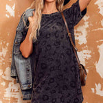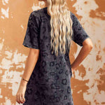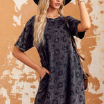 Leopard Round Neck Dropped Shoulder Dress with Pockets