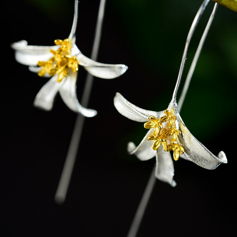 Lotus Fun Osmanthus Fragrans Flower Dangle Earrings Real 925 Sterling Silver Handmade Designer Fine Jewelry Earrings for Women