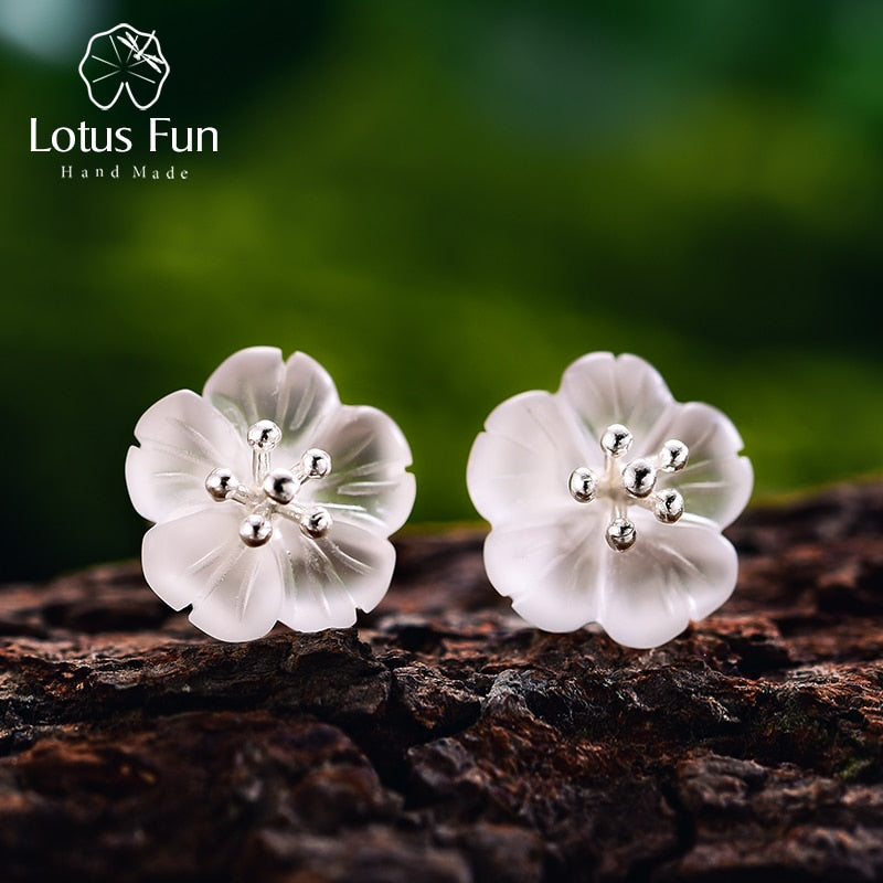 Lotus Fun Real 925 Sterling Silver Earrings Natural Crystal Gems Fine Jewelry Flower in the Rain Stud Earrings for Women Brincos