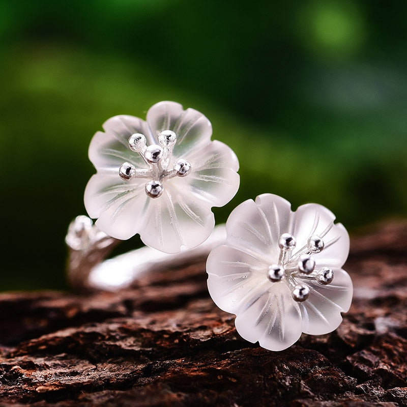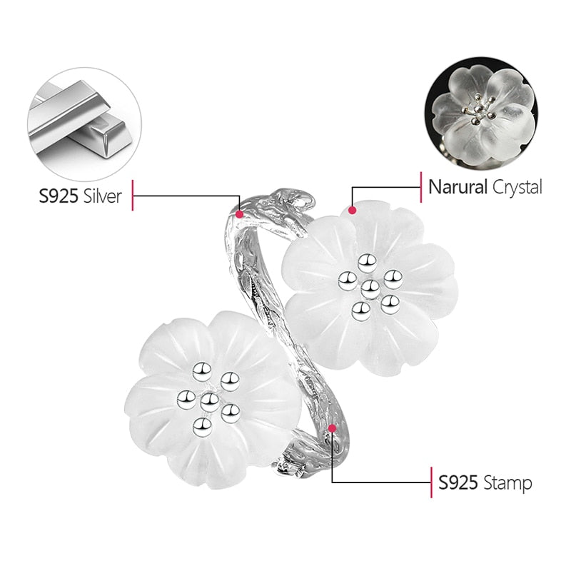 Lotus Fun Real 925 Sterling Silver Natural Crystal Ring Handmade Designer Fine Jewelry Flower in the Rain Rings for Women Bijoux