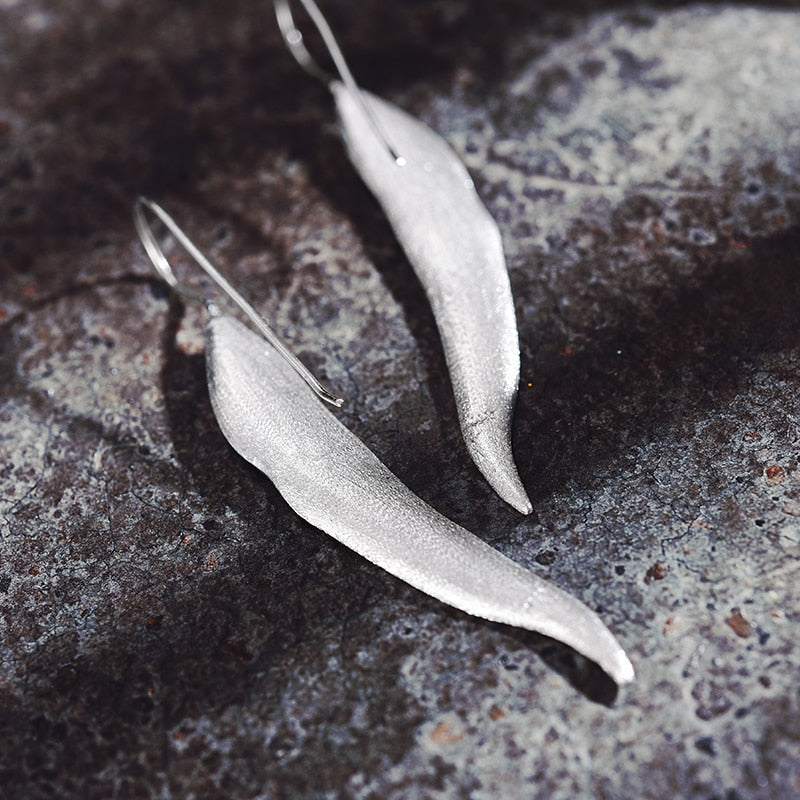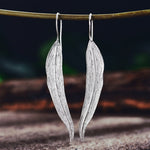 Feature: Brushed Silver Long Leaves Dangle Earrings