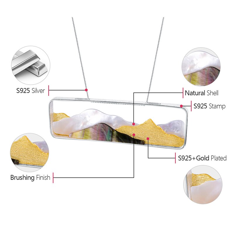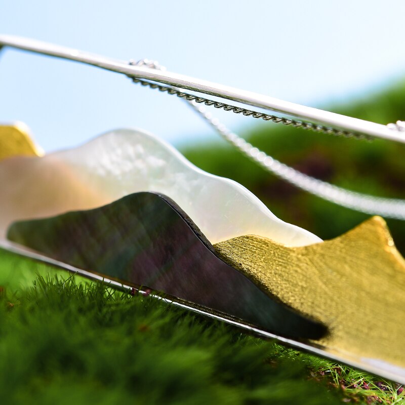 Lotus Fun Real 925 Sterling Silver Natural Sea Shell Handmade Fine Jewelry Multipeaked Mountain Design Pendant without Necklace