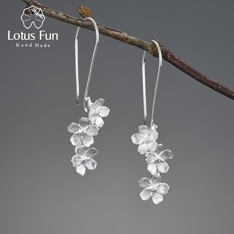 Lotus Fun Wedding Fresh Elegant Forget-me-not Flower Dangle Earrings For Women 925 Sterling Silver Fashion Jewelry 2022 Trend
