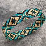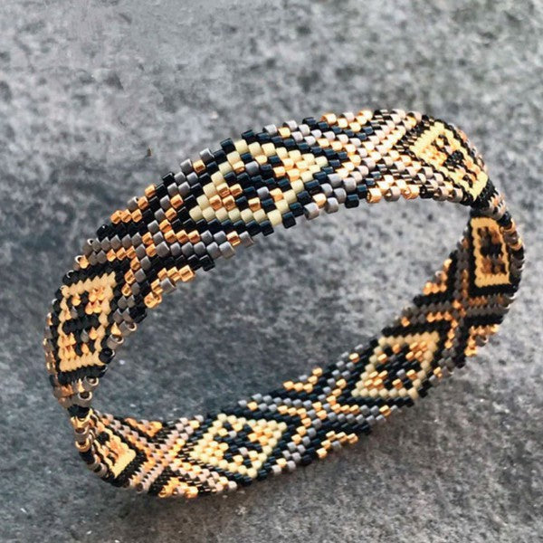 With an incredibly intrinsic design, these handmade bracelets are the attention stealers this season. Each bracelet is handmade of miniature seed beads perfectly arranged to create the design. Seed beads are woven tight enough for the bracelet to take it's round shape and at the same time it's flexible.