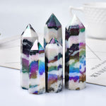 Natural Aura Stone Crystal Point Healing Obelisk Black and White Zebra Quartz Wand Beautiful Ornament for Home Decor Pyramid