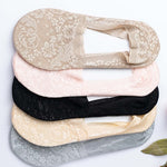 Experience elegance and practicality with our No-Slip Floral Lace Socks. The silicone lining on the inside and sole ensures a secure, no-slip grip, keeping your steps confident and stable. Designed with plenty of stretches, these socks comfortably fit sizes 5-10, providing a snug yet flexible feel. The charming floral lace design adds a touch of femininity and style to your feet, making them a perfect accessory for various occasions.