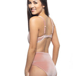 SOLID PINK VELVET ONE PIECE WITH CUTOUT DETAIL