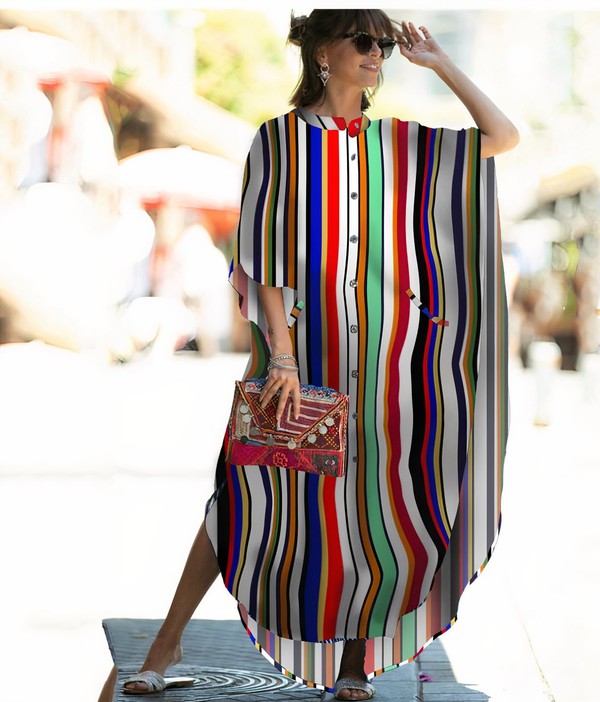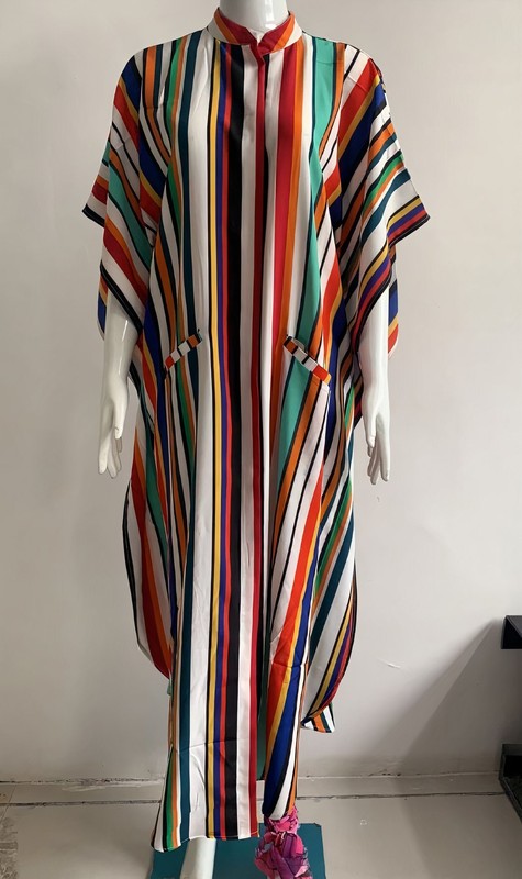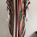 Hot & trendy button-down dress with pockets. Wear it with a belt, or at the beach over your bathing suit. Colorful stripes pattern. One size. Length 135cm/53in, Shoulder width: 89cm/35in, Bust: 130cm/51in (button adjustable).