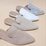 GEM-39 - POINTED TOE SLIP ON MULE FLATS