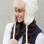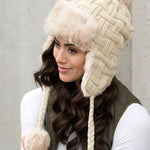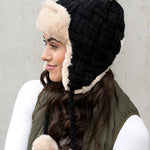 Cable Weave Pom Trapper Hat