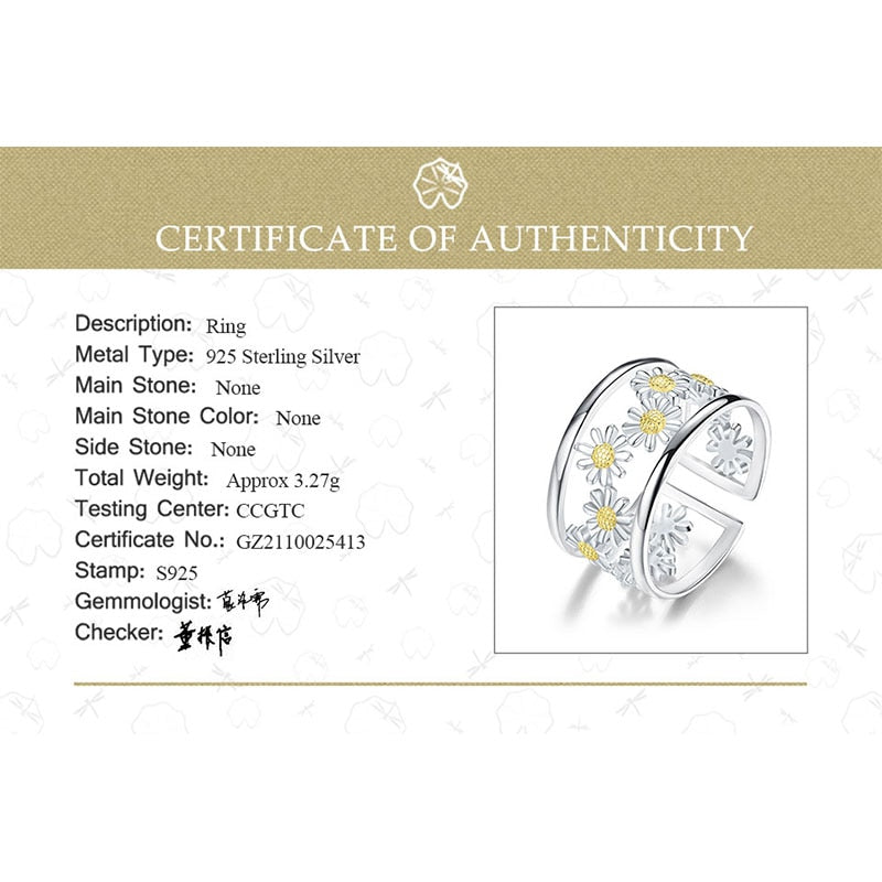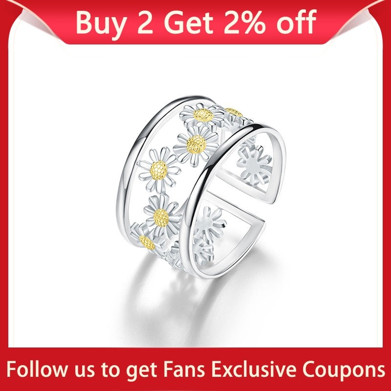 Lotus Fun Elegant Little Daisy Flower Adjustable Rings for Women Real 925 Sterling Silver Luxury 18K Gold Jewelry 2022 Trend New