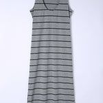 Achieve effortless style with this Striped Slit Sleeveless Maxi Dress. With its slitted sides and comfortable fabric, it provides an easy but chic look. Perfect for brunch or beach day!