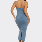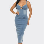 ATHINA CASUAL LIGHT WASHED DENIM MIDI DRESS