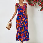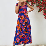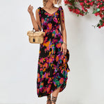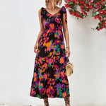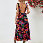 Look stunning and turn heads in this vibrant multicolored midi dress. Featuring a V-neck and backless silhouette, it includes a slim belt to complete the look. From special occasions to everyday wear, this dress will help make a statement.