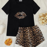 Leopard Lip Graphic Top and Shorts Lounge Set