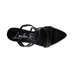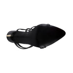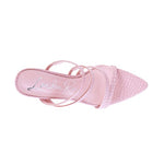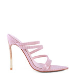 Straight from the haute couture walkways, this pointed shoe in croc textured shiny pu has bling metallic high heel. Comes with light padding which cuts strain. The upper strap has elasticated detail, adding help to all feet sizes.
