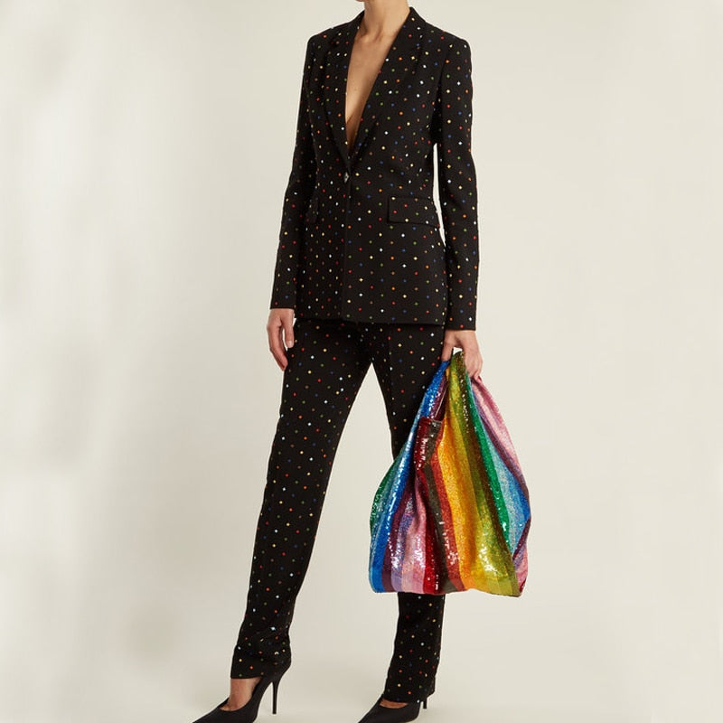 Add some pizzazz to your outfit with this stylish Rainbow Gradient Sequins Bag. With colorful sequins in a gradient pattern, this tote bag is sure to turn heads. The large size is perfect for carrying all your essentials, while the tote style makes it easy to grab and go. Whether you're headed to the beach or the mall, this bag is a great way to add some fun to your look.