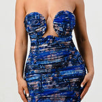 DEEP OCEAN PRINT MINI BODYCON DRESS