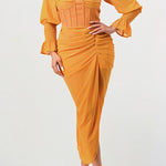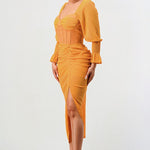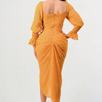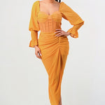 This Sun Kiss Long Sleeve Chiffon Dress is the perfect wardrobe essential. Crafted in beautiful yellow chiffon with elastic cuffs, a corset waist detail, and made of imported materials, this dress is designed for ultimate comfort and style.