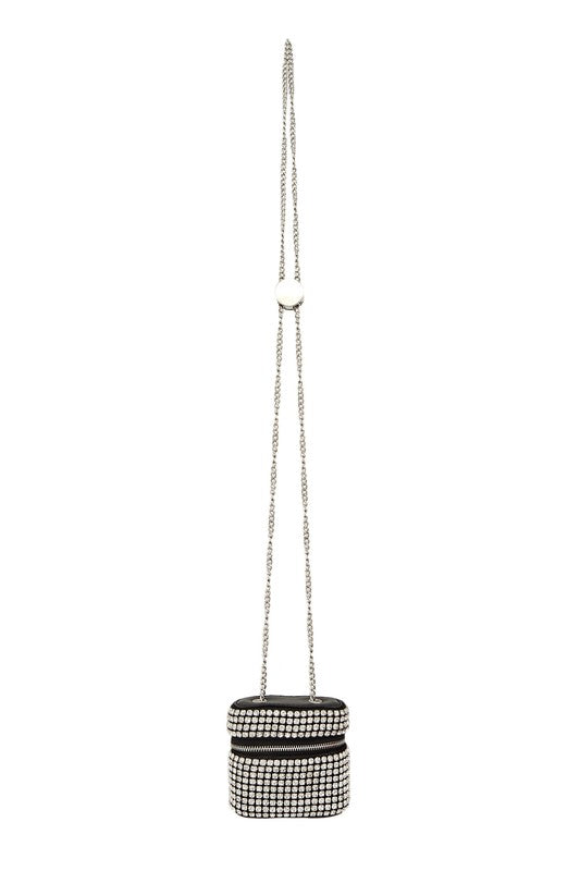 Indulge in luxury with our Mini Rhinestone Crossbody Bag. This elegant bag features dazzling rhinestones and a convenient crossbody design, perfect for any occasion. Upgrade your style with this exclusive accessory.