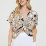 Made in USA Cotton Short Sleeve Top with Front Twist. Fabric content: 100% Cotton.