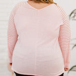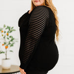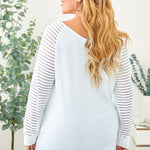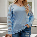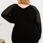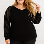 Curvy Line- Sheer Striped Sleeve V-Neck Top