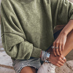 This sweatshirt is casual and vintage with a relaxed washed hue silhouette