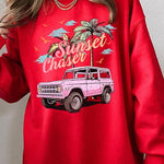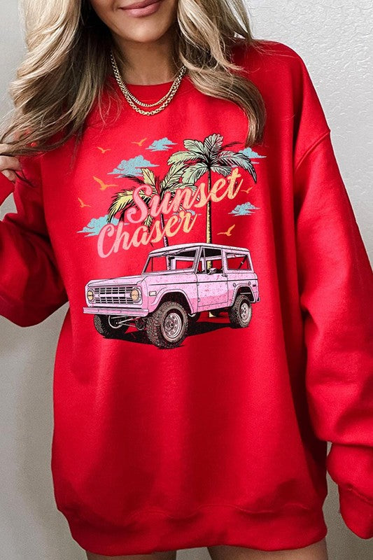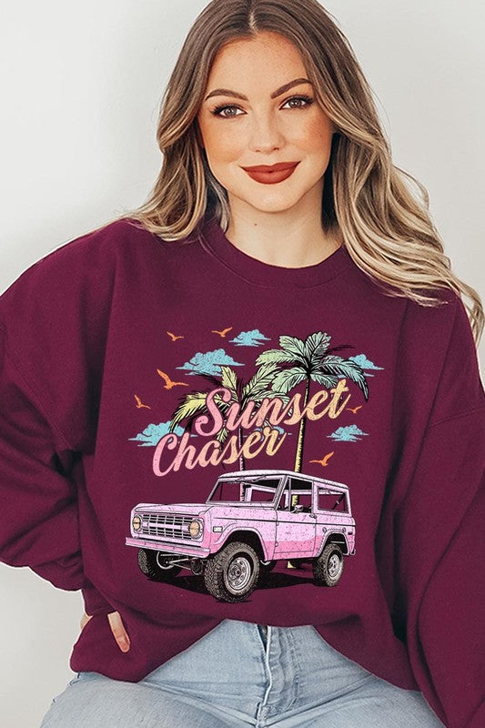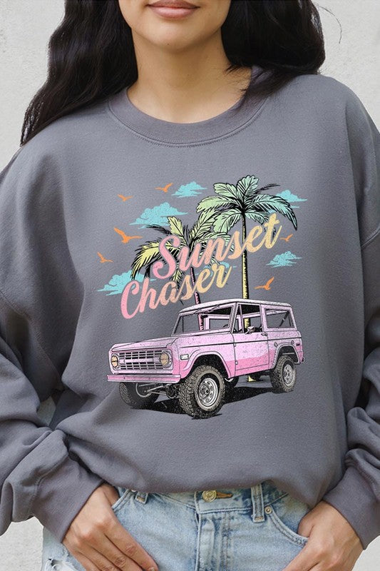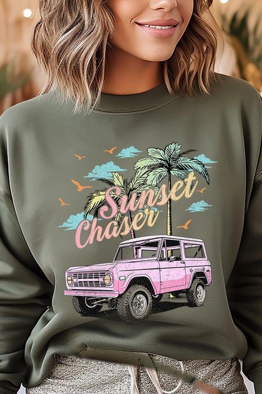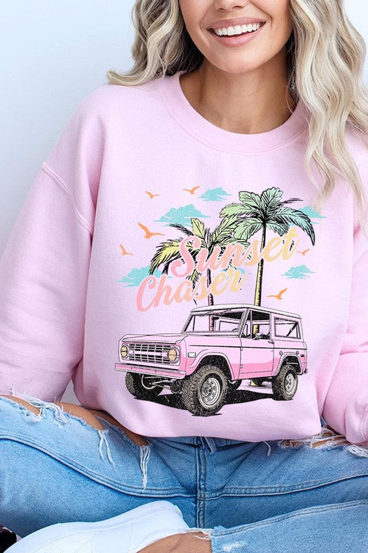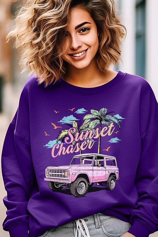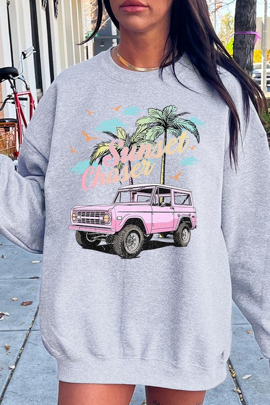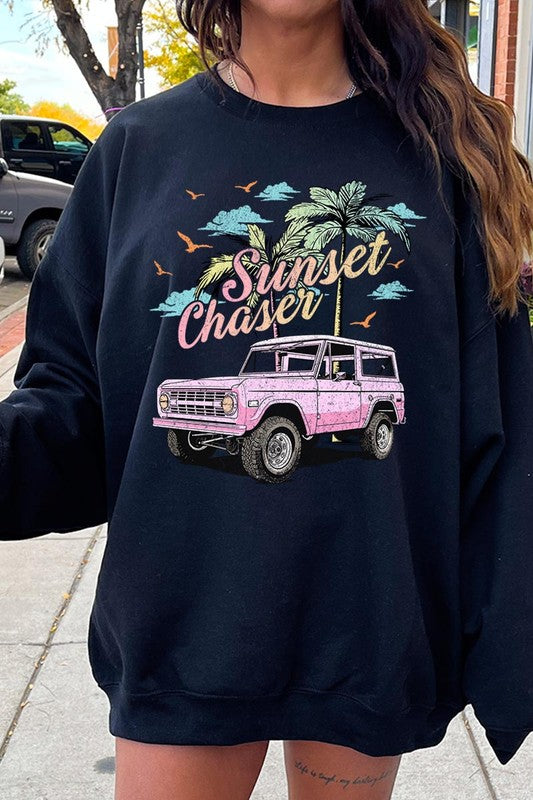 Sunset Chaser Bronco Graphic Fleece Sweatshirts.