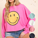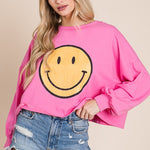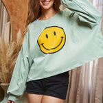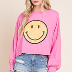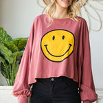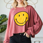 SMILEY FACE, LONG SLEEVE, CROP TOP
