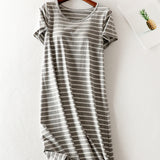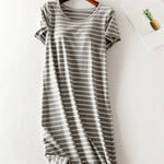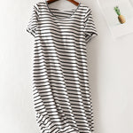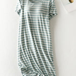 Expertly designed for comfort and style, this Striped Round Neck Short Sleeve Dress is a must-have for your wardrobe. The classic stripes add a touch of sophistication while the short sleeves offer flexibility and breathability. Made with high-quality materials, it guarantees a perfect fit and long-lasting wear.