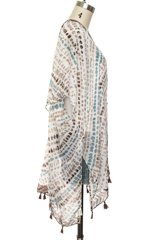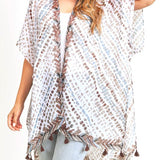 Introducing our Fringe Tassel Light Weight Kimono, the perfect blend of style and comfort. This elegant kimono features fringe tassels that add a touch of luxury, while its lightweight material makes it perfect for any occasion. Elevate your wardrobe with this exclusive piece and make a statement wherever you go.