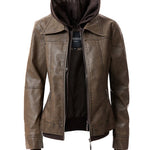 Women's Hood PU Leather Jacket